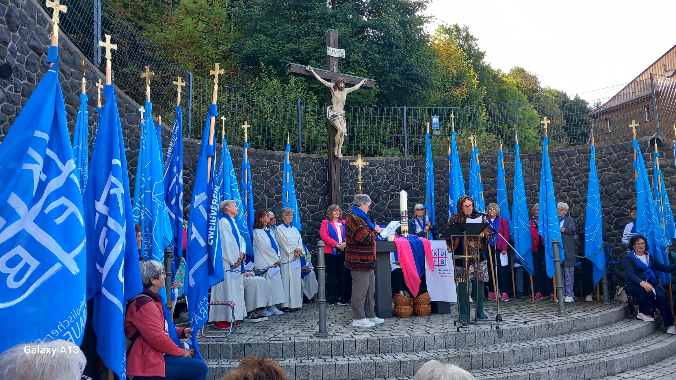 Liebevoll ausgewählte Texte und realitätsnahe Fürbitten rundeten den Gottesdienst ab, der von rund 40 Fahnenabordnungen der Zweigvereine des KDBF und einer schwungvollen Wallfahrtsmusikkapelle feierlich umrahmt wurde. Nach dem Gottesdienst war bei herrlichem Spätsommerwetter Möglichkeit zu Austausch und Information an den Ständen des KDFB und des Orga-Teams des Katholikentages, der vom 13. bis 17. Mai 2026 in Würzburg stattfindet.