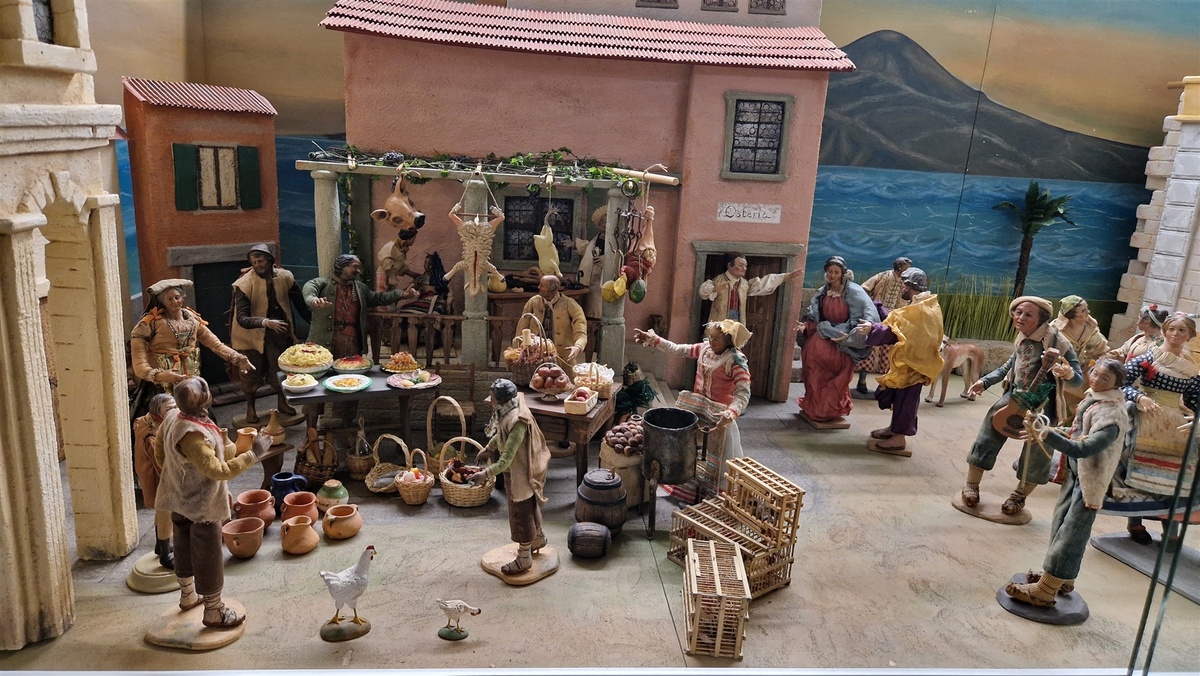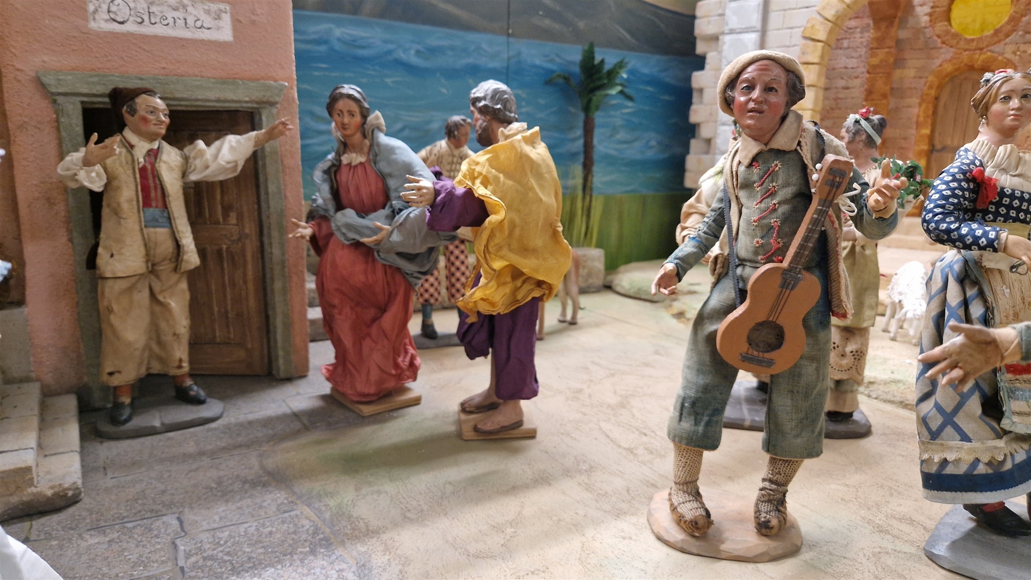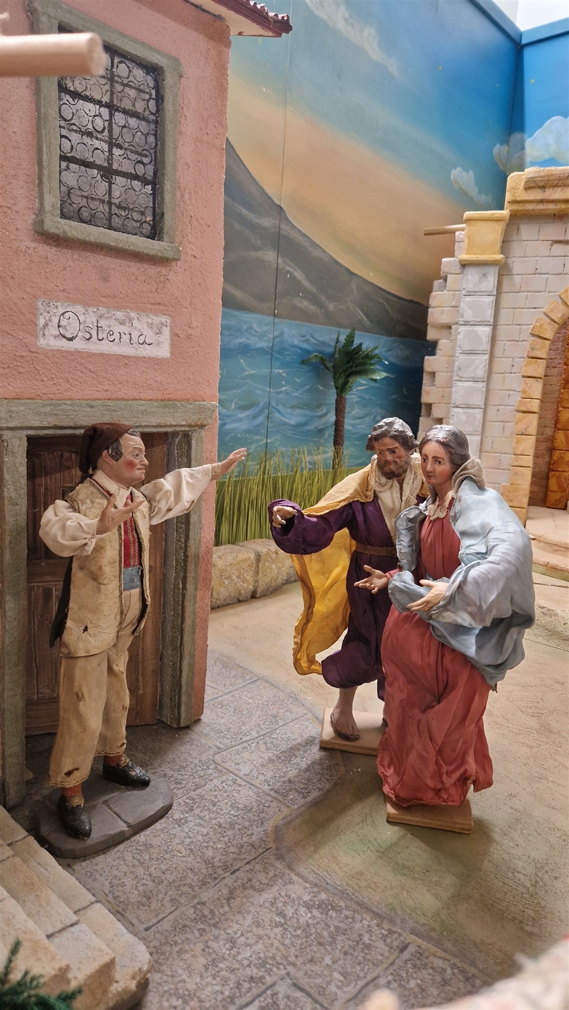 Bis zum Heiligen Abend wird aktuell die Herbergssuche dargestellt. Im Trubel des belebten Marktplatzes sind Maria und Josef zu sehen, die vom Wirt der Osteria abgewiesen werden. Danach wird die Geburt Christi dargestellt. Zum Dreikönigsfest wird der Besuch der drei Weisen aus dem Morgenland zu sehen sein, die mit Kamelen und Elefanten die Krippe besuchen.