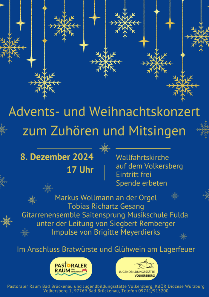 Erleben Sie einen stimmungsvollen Abend in der Wallfahrtskirche auf dem Volkersberg und lassen Sie sich von unserem einzigartigen Konzert verzaubern. Genießen Sie eine harmonische Mischung aus Orgelklängen von Markus Wollmann, Gesang von Tobias Richartz und dem Gitarrenensemble Saitensprung der Musikschule Fulda unter der Leitung von Siegbert Remberger die Ihr Herz berührt und Sie in eine besinnliche adventliche Stimmung versetzen wird.