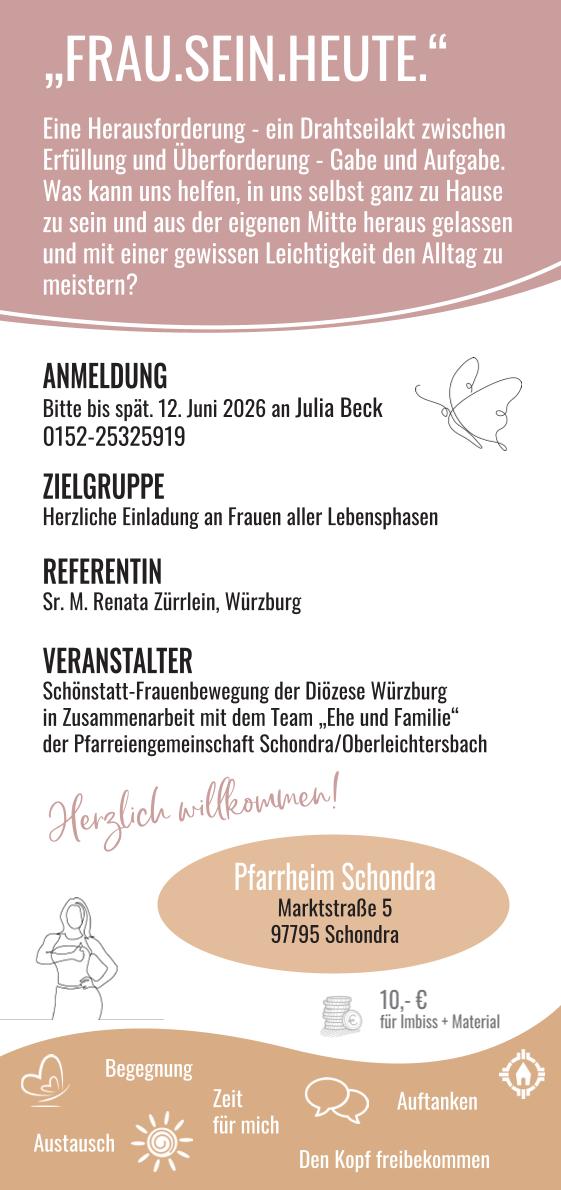 Veranstalter: Schönstatt-Frauenbewegung der Diözese Würzburg in Zusammenarbeit mit dem Team "Ehe und Familie" der Pfarreiengemeinschaft Schondra/Oberleichtersbach